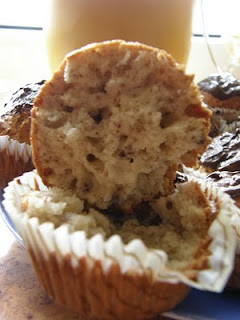 Kiedy człowiek naogląda się pyszności na blogach kulinarnych to nie może się oprzeć spróbowania upieczenia czegoś, a jak nie posiada się zdolności to wybiera coś łatwego jak mufinki. Znalazłam je na tym blogu. W opisie są orzechy włoskie i cynamon, ale ja dałam orzechy laskowe i bez cynamonu. Oj moja dieta mnie woła, a wręcz wrzeszczy bym wróciła na jej łono, bo wiosna się zbliża...